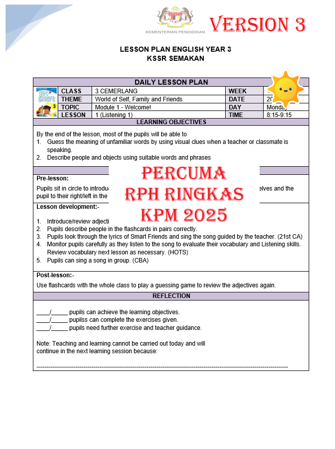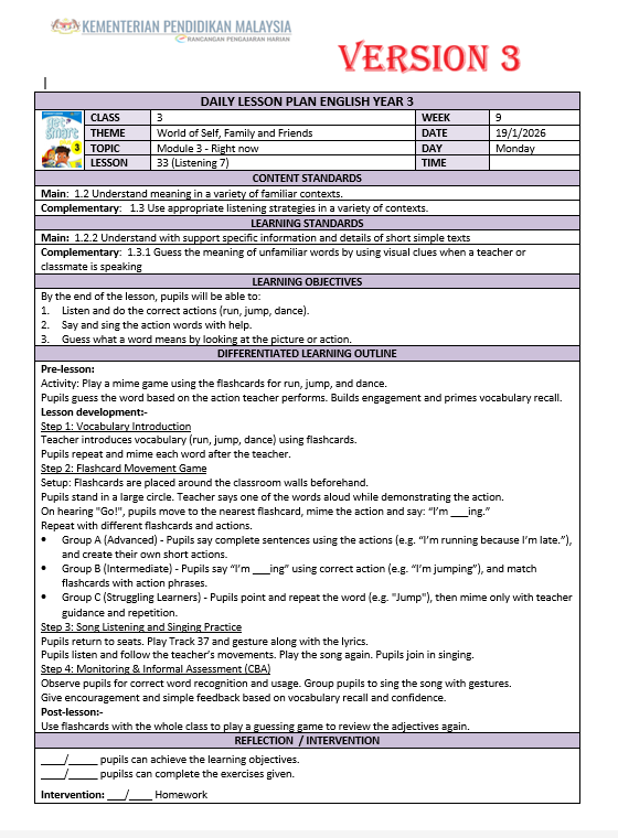 RPH Bahasa Inggeris Tahun 3 2026 – Version 3