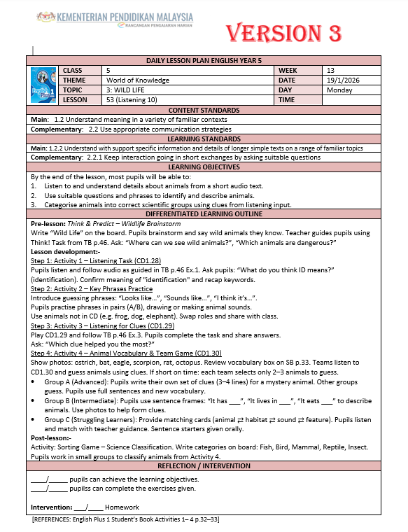 RPH Bahasa Inggeris Tahun 5 2026 – Version 3