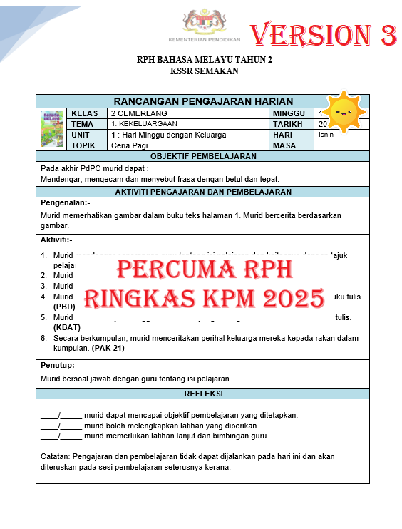 RPH Bahasa Melayu Tahun 2 2025/2026 – Version 1 (RPH TS25)