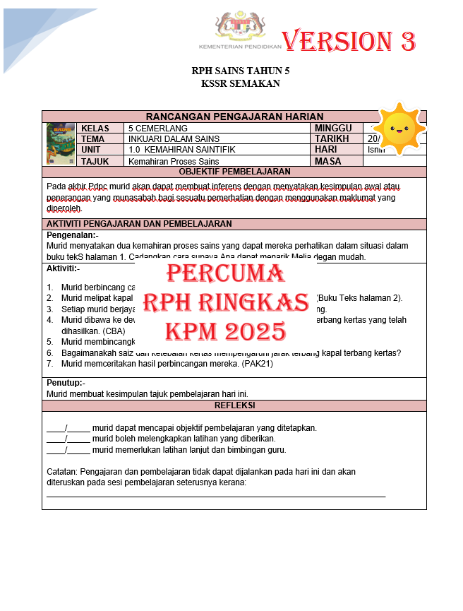 📘 Rancangan Pengajaran Harian (RPH) Sains Tahun 5 – Umum