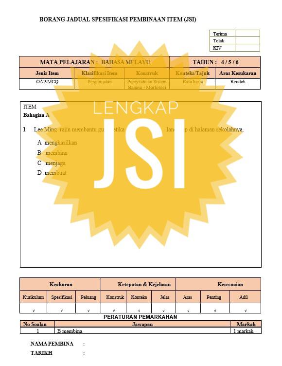 UASA – BAHASA MELAYU SJK TAHUN 6 (1 set soalan)