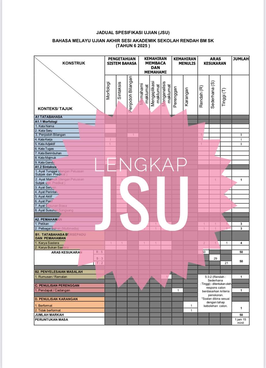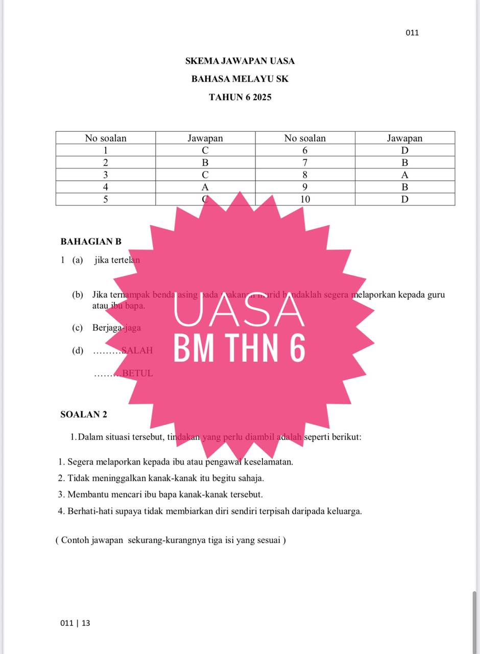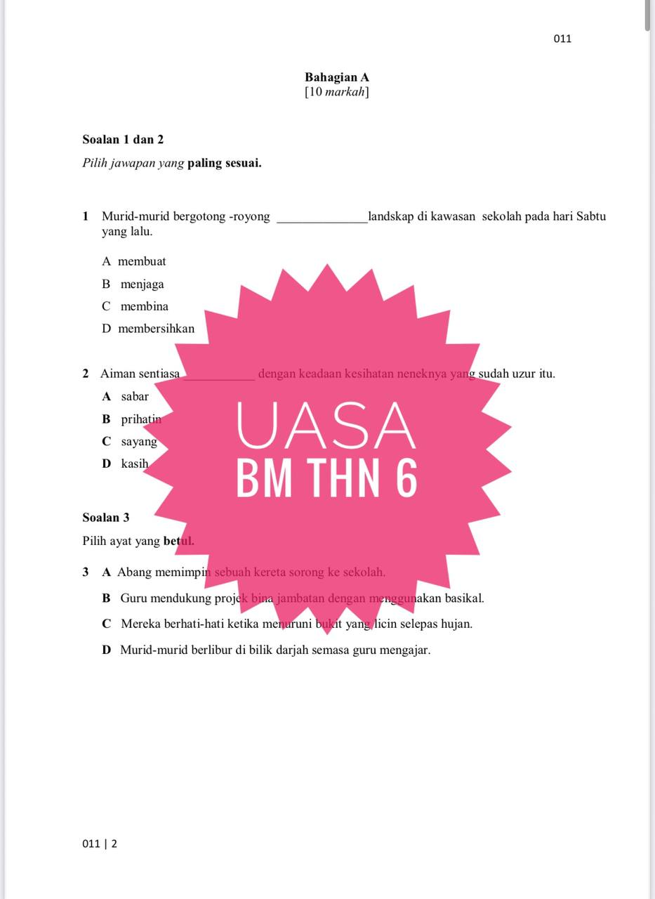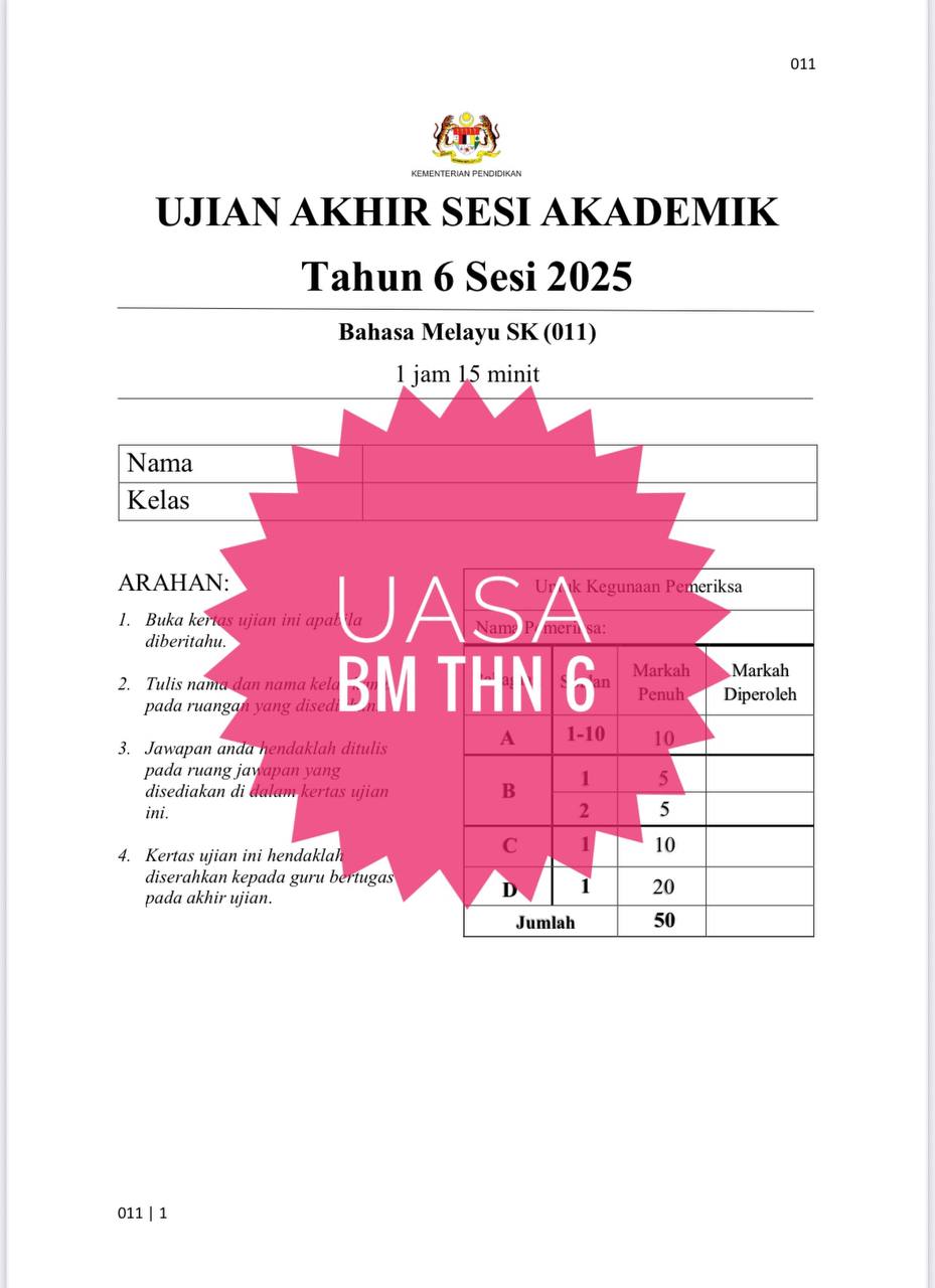 BAHASA MELAYU UASA TAHUN 6 (1 set soalan)