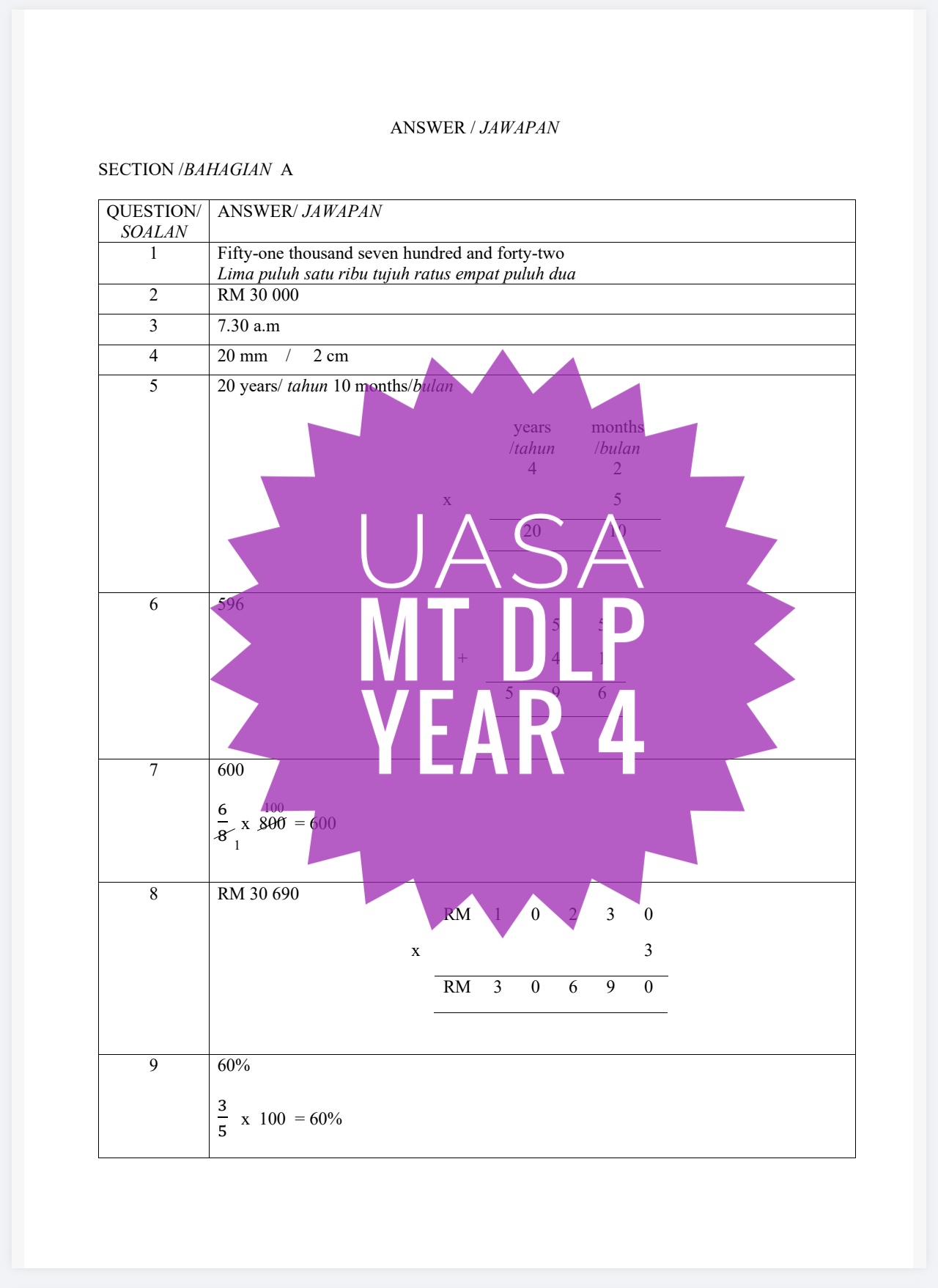 UASA Mathematics DLP Year 4 (1 set soalan)