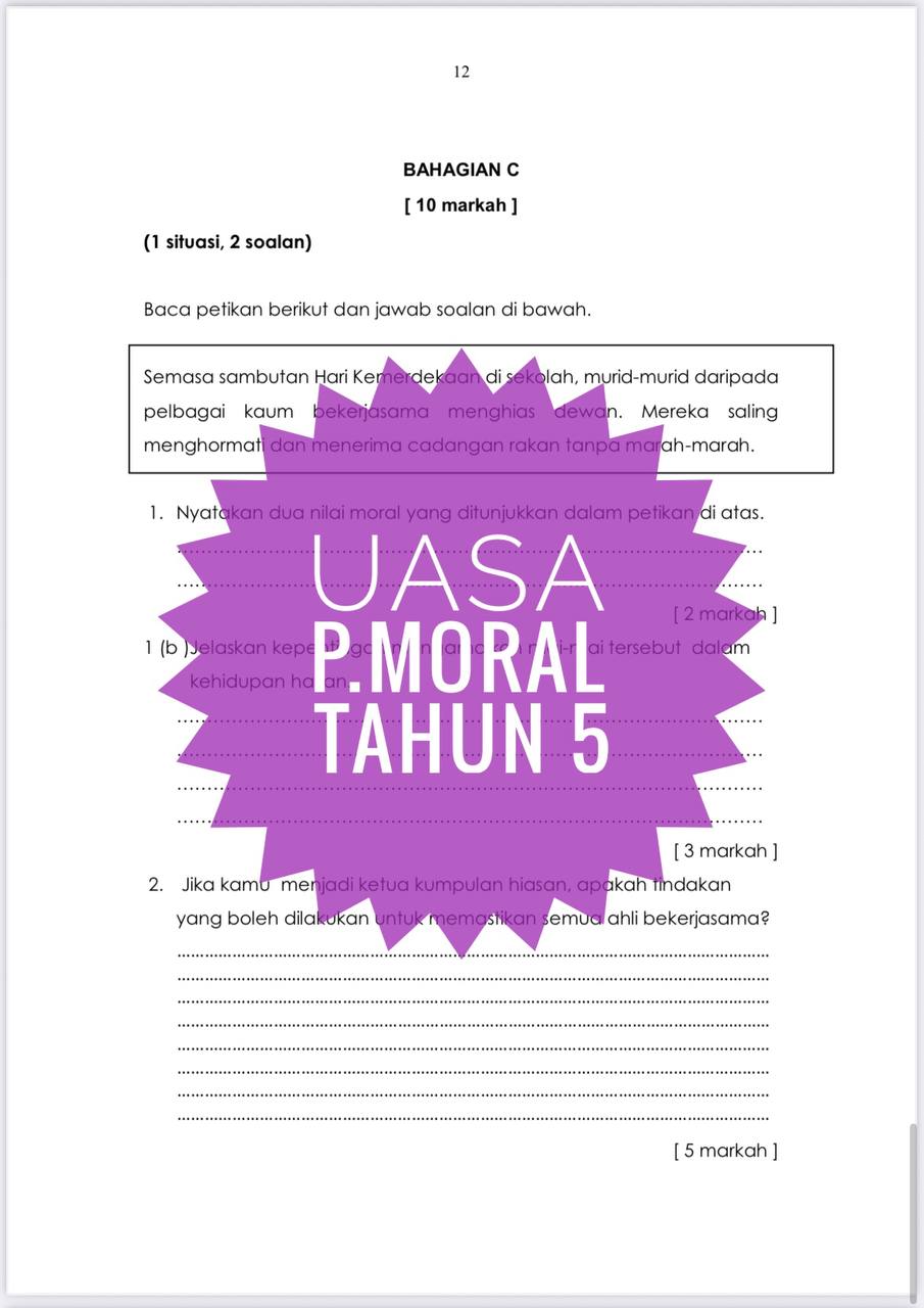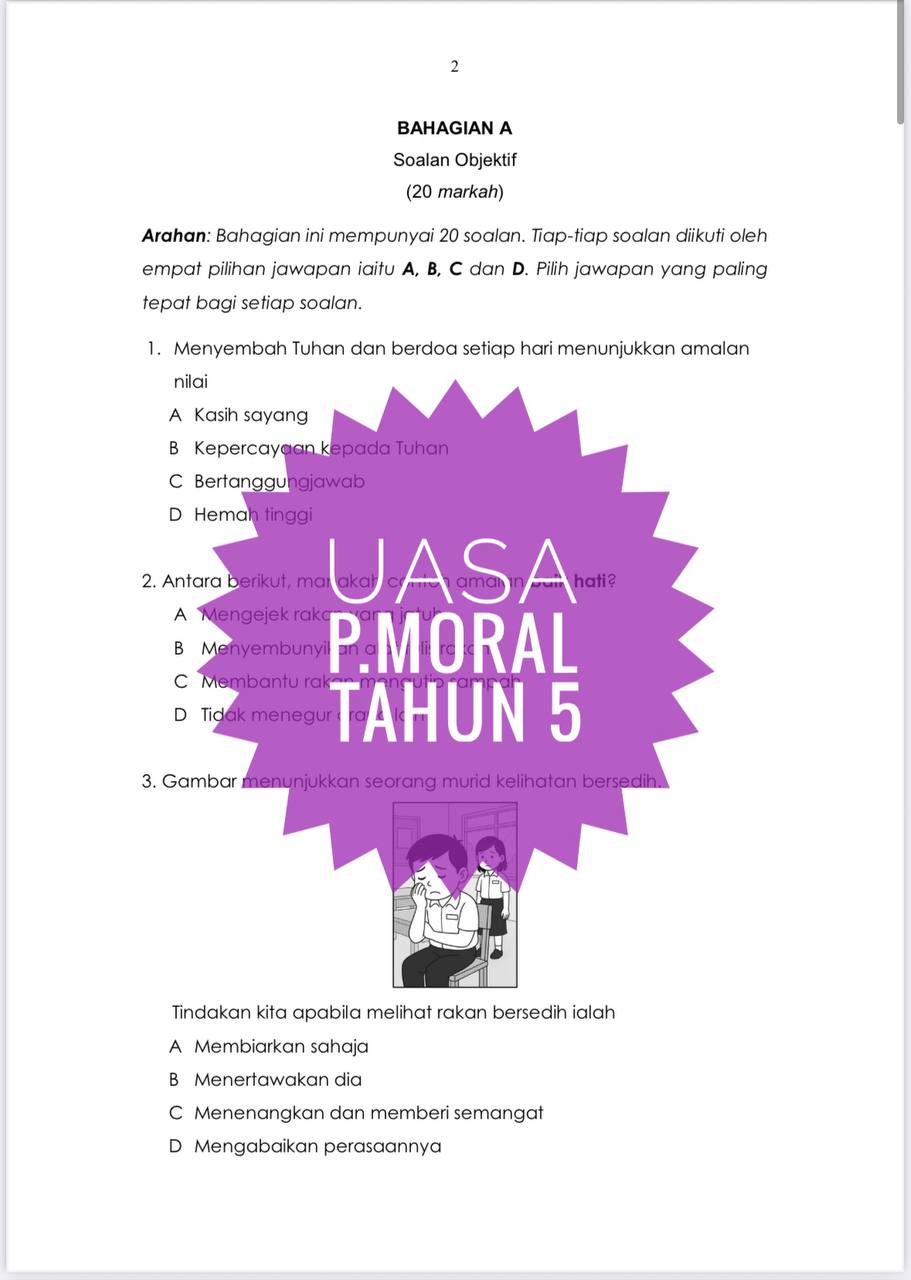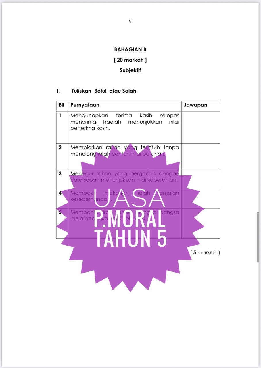 PENDIDIKAN MORAL UASA TAHUN 5 ( 1 set soalan)