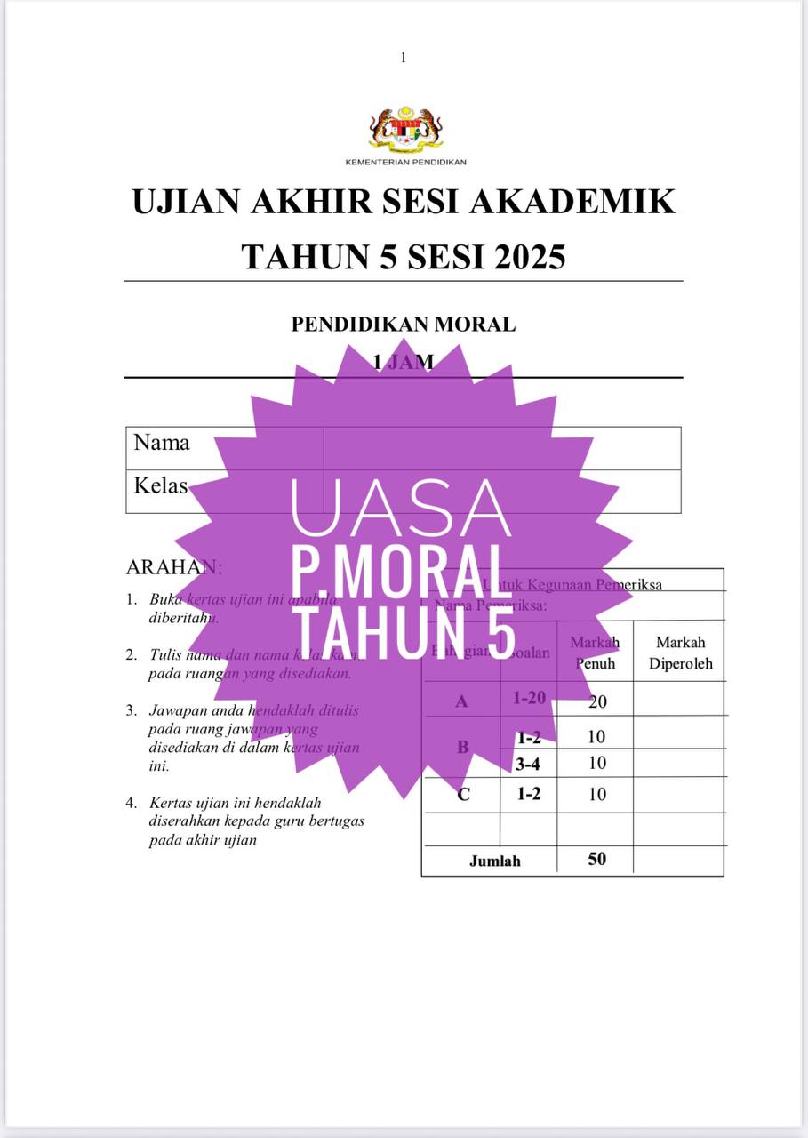 UASA – Pendidikan Moral Tahun 5 2025/2026 (Set 1B)
