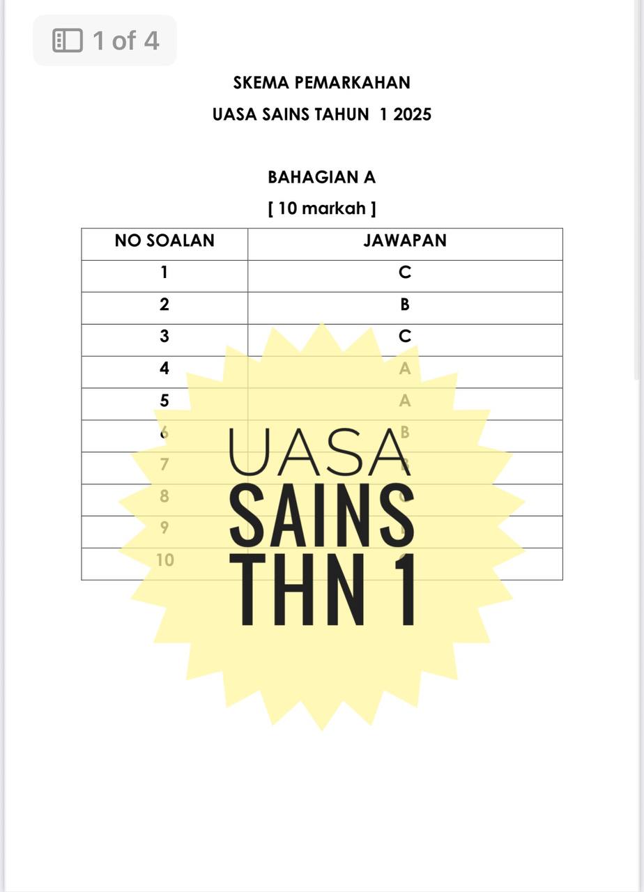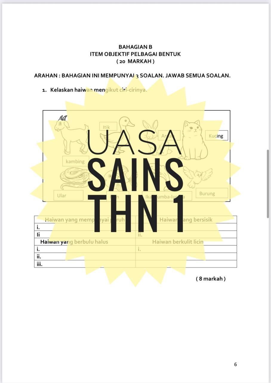 - PDF dan Microsoft Words (Boleh edit) (UASA SAINS TAHUN 1 ( 1 set soalan))