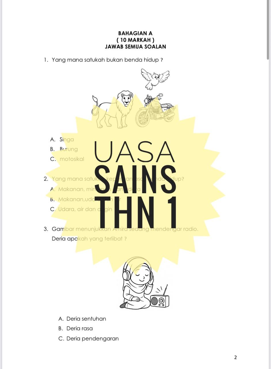 UASA SAINS TAHUN 1 ( 1 set soalan)