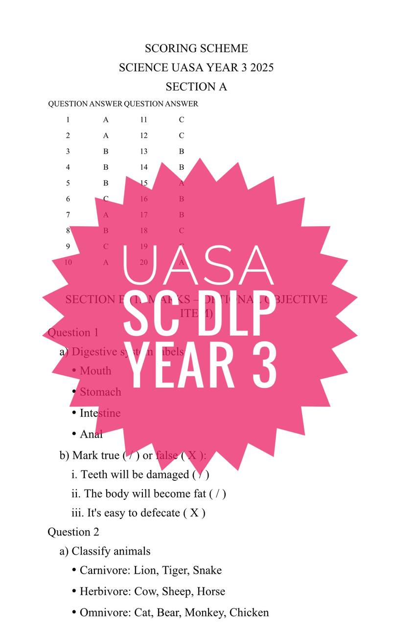 UASA SCIENCE DLP YEAR 3 (1 set soalan)