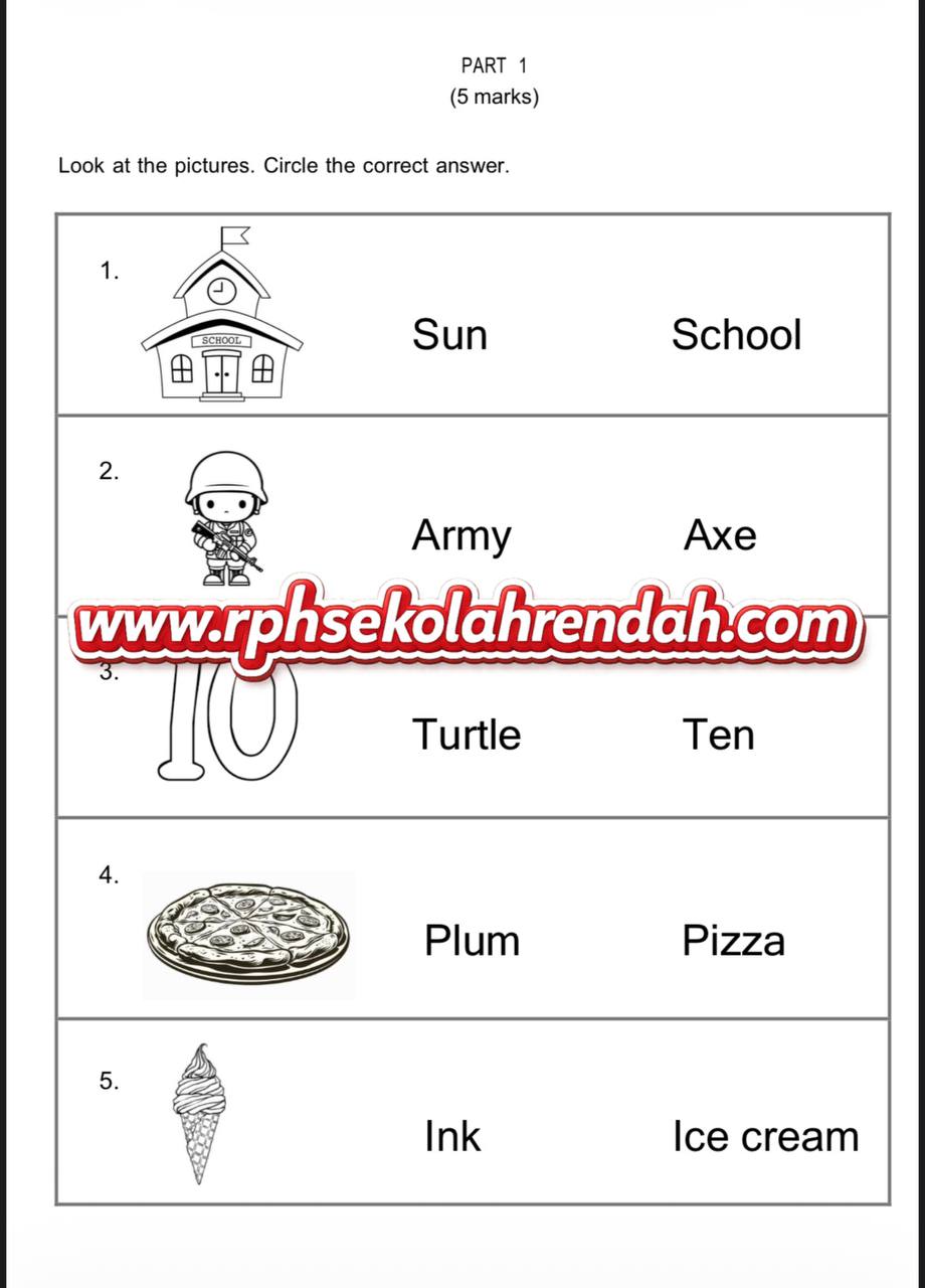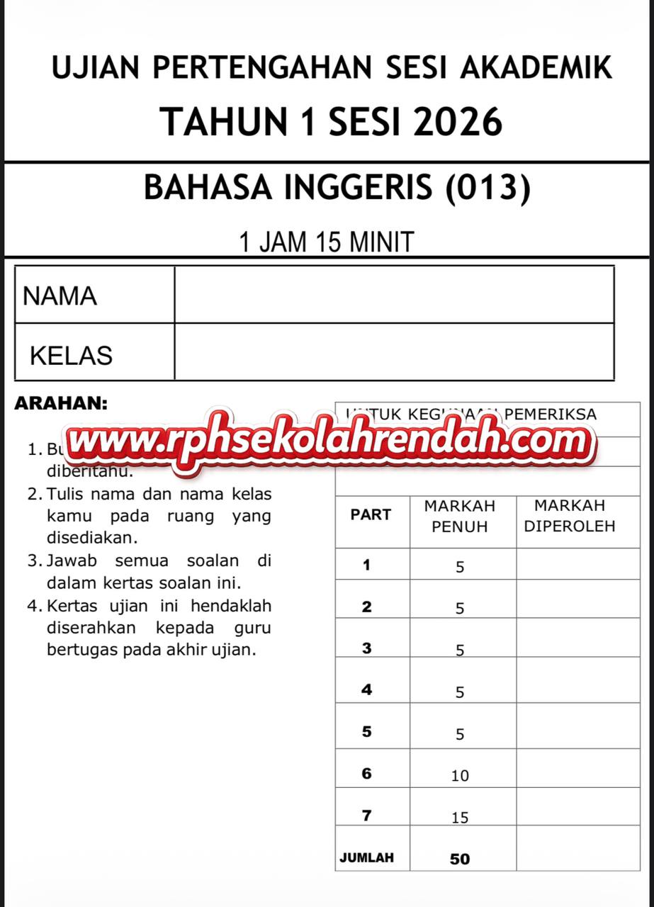 BAHASA INGGERIS UPSA TAHUN 1 ( 1 set soalan)