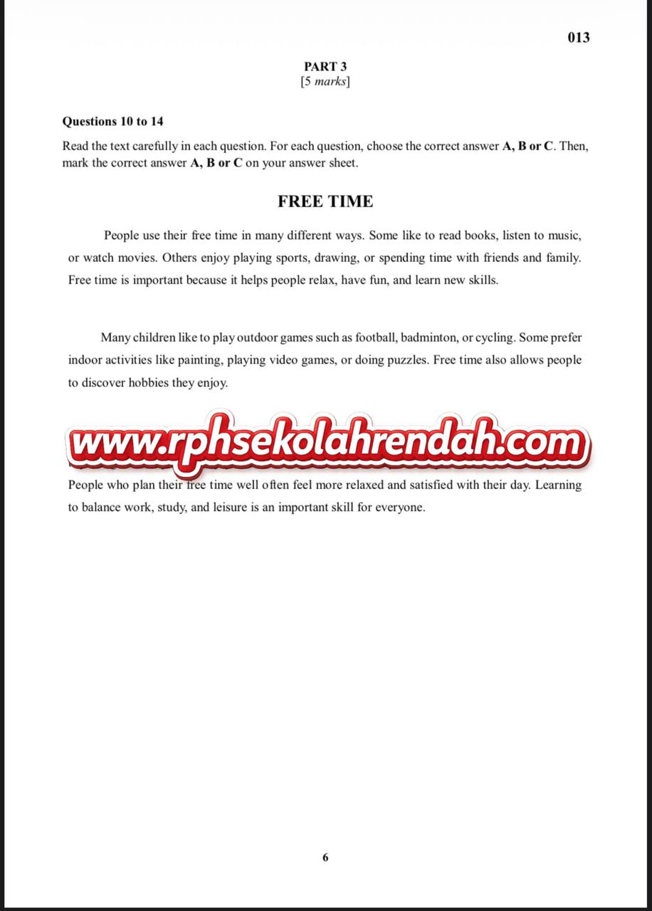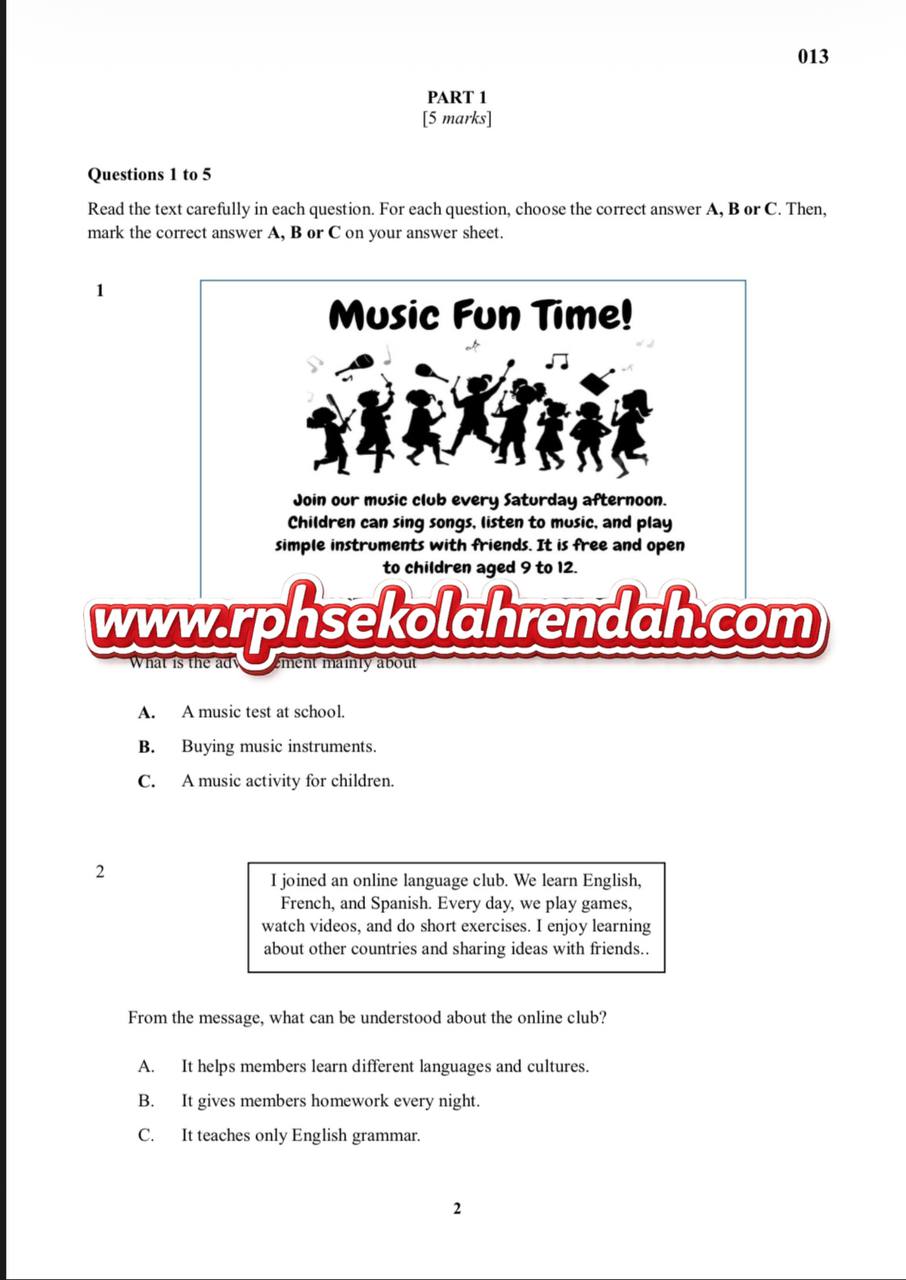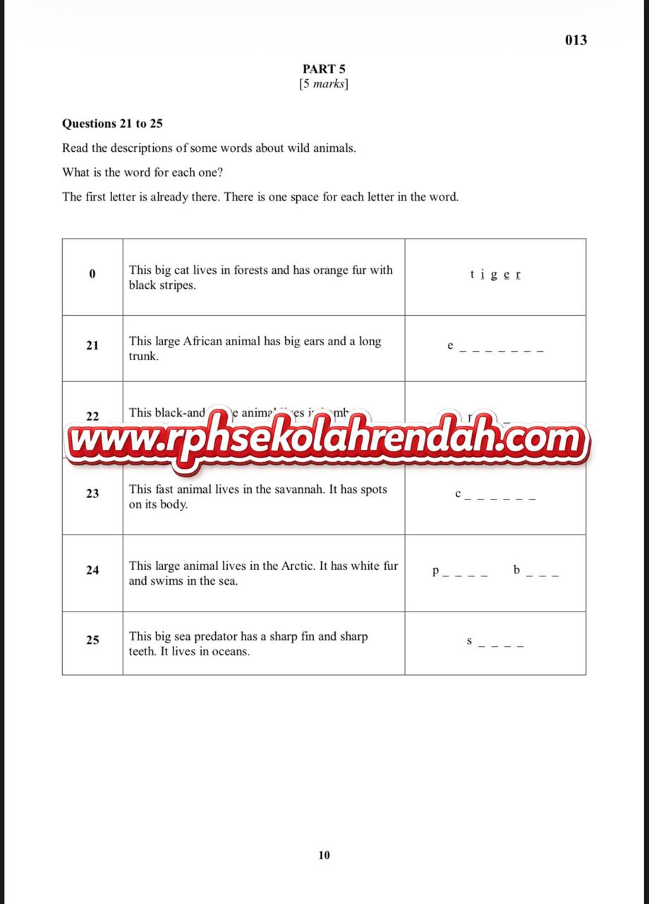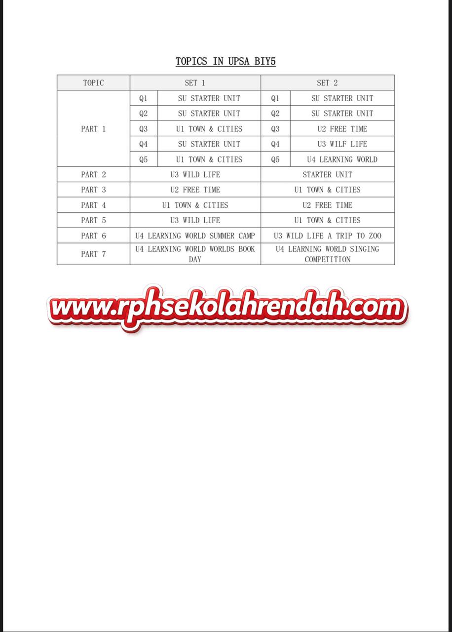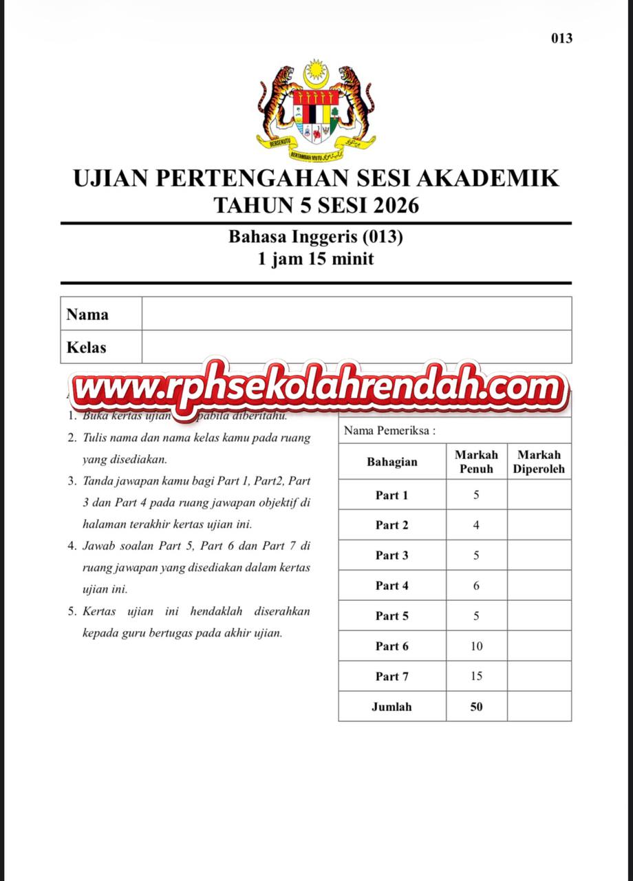 BAHASA INGGERIS UPSA TAHUN 5 ( 1 set soalan)