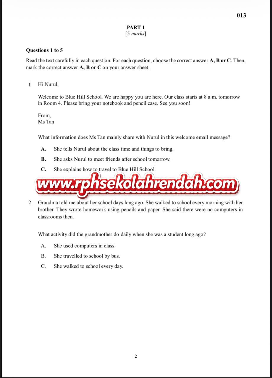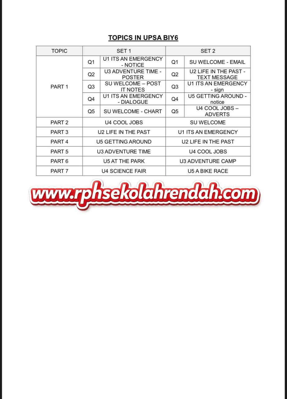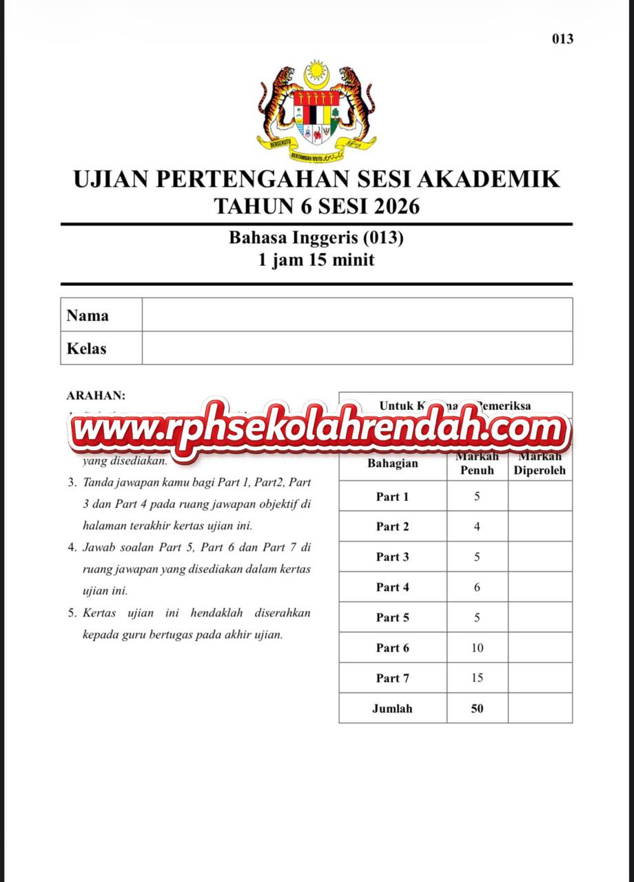BAHASA INGGERIS UPSA TAHUN 6 ( 1 set soalan)
