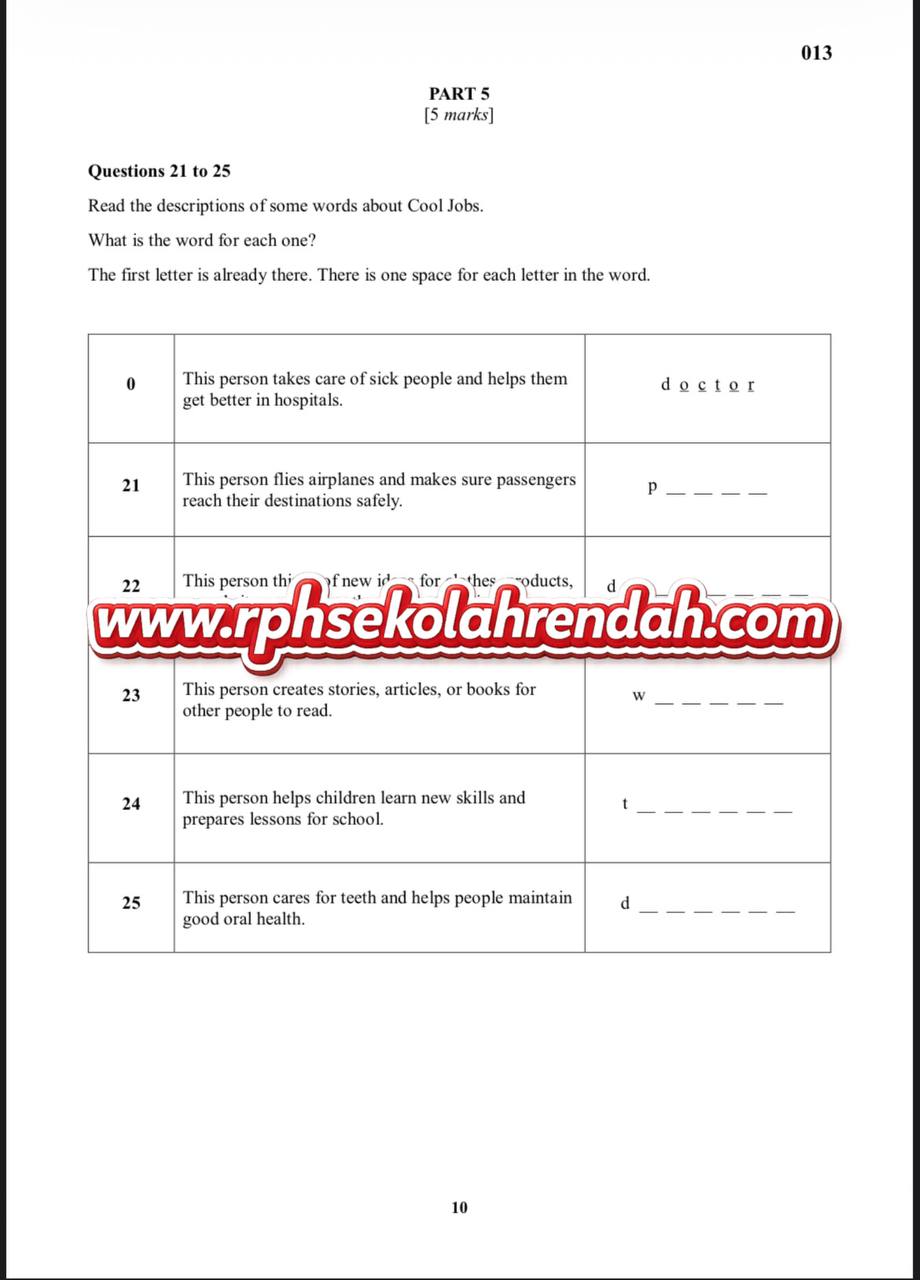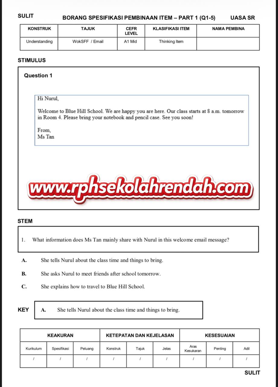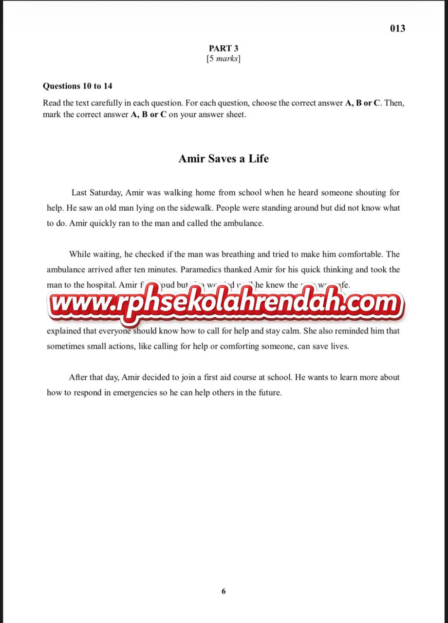 BAHASA INGGERIS UPSA TAHUN 6 ( 1 set soalan)