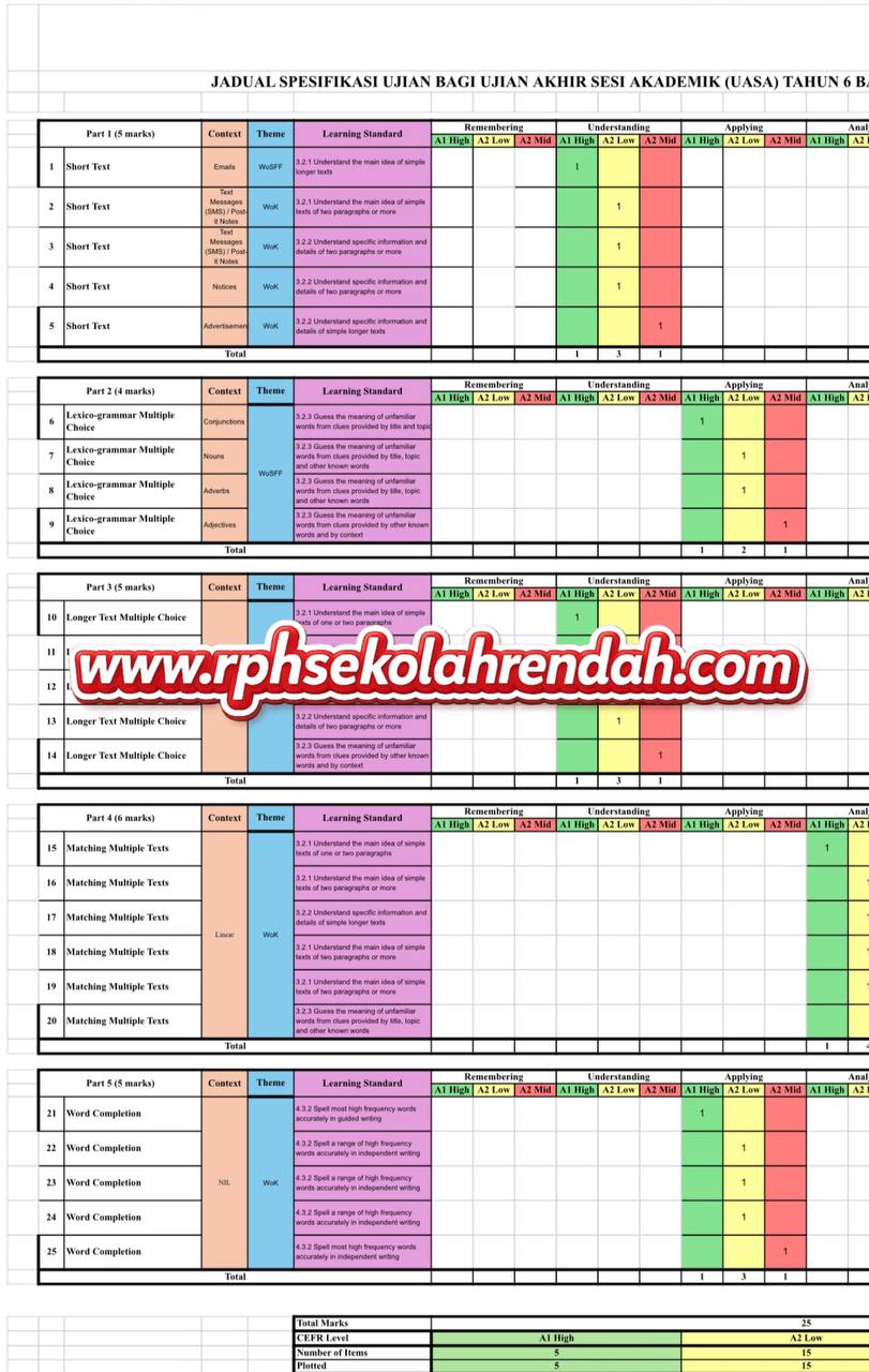 - Rujuk DSKP dan RPT