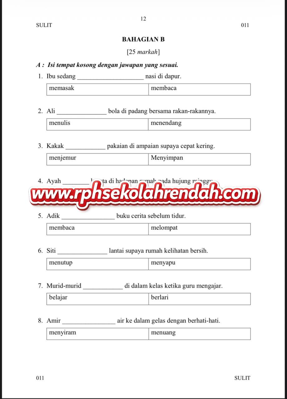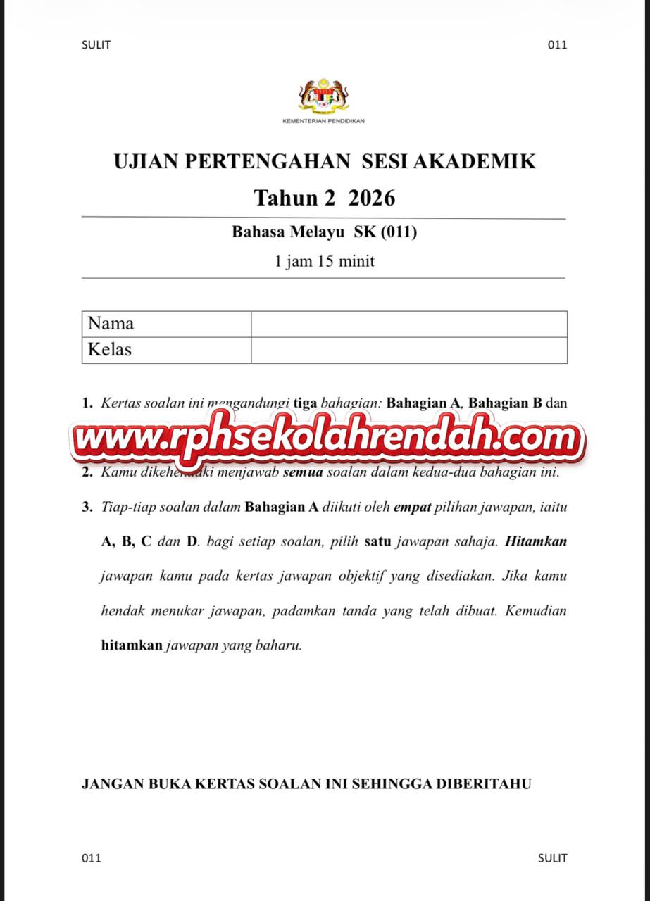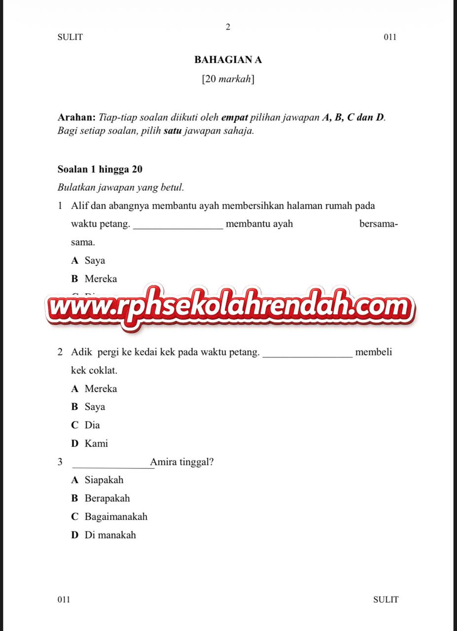 BAHASA MELAYU UPSA TAHUN 2 ( 1 set soalan)