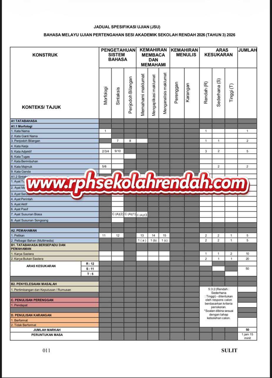 UPSA – Bahasa Melayu Tahun 3 2026 (Set 1 – Soalan + JSU)