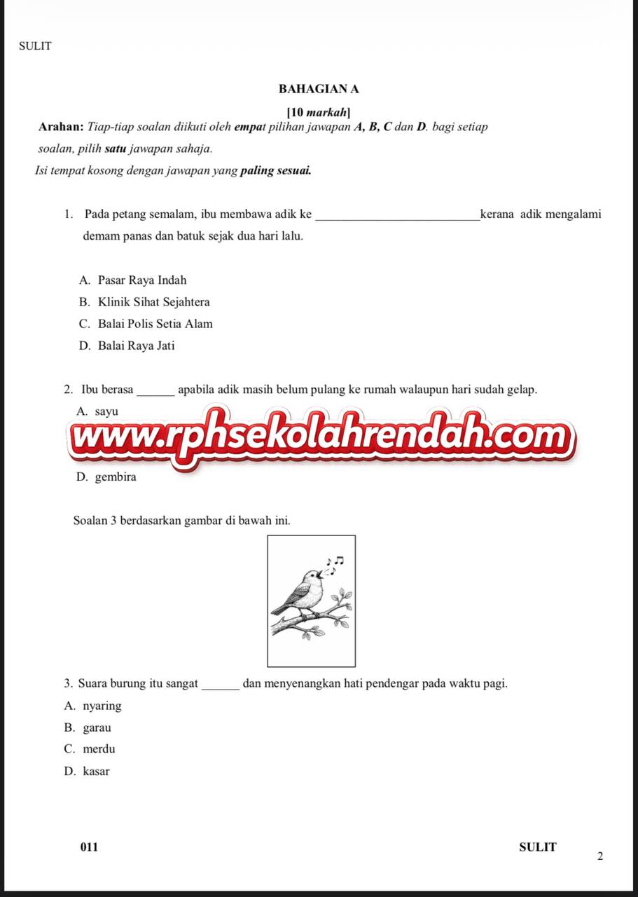 BAHASA MELAYU UPSA TAHUN 3 ( 1 set soalan)