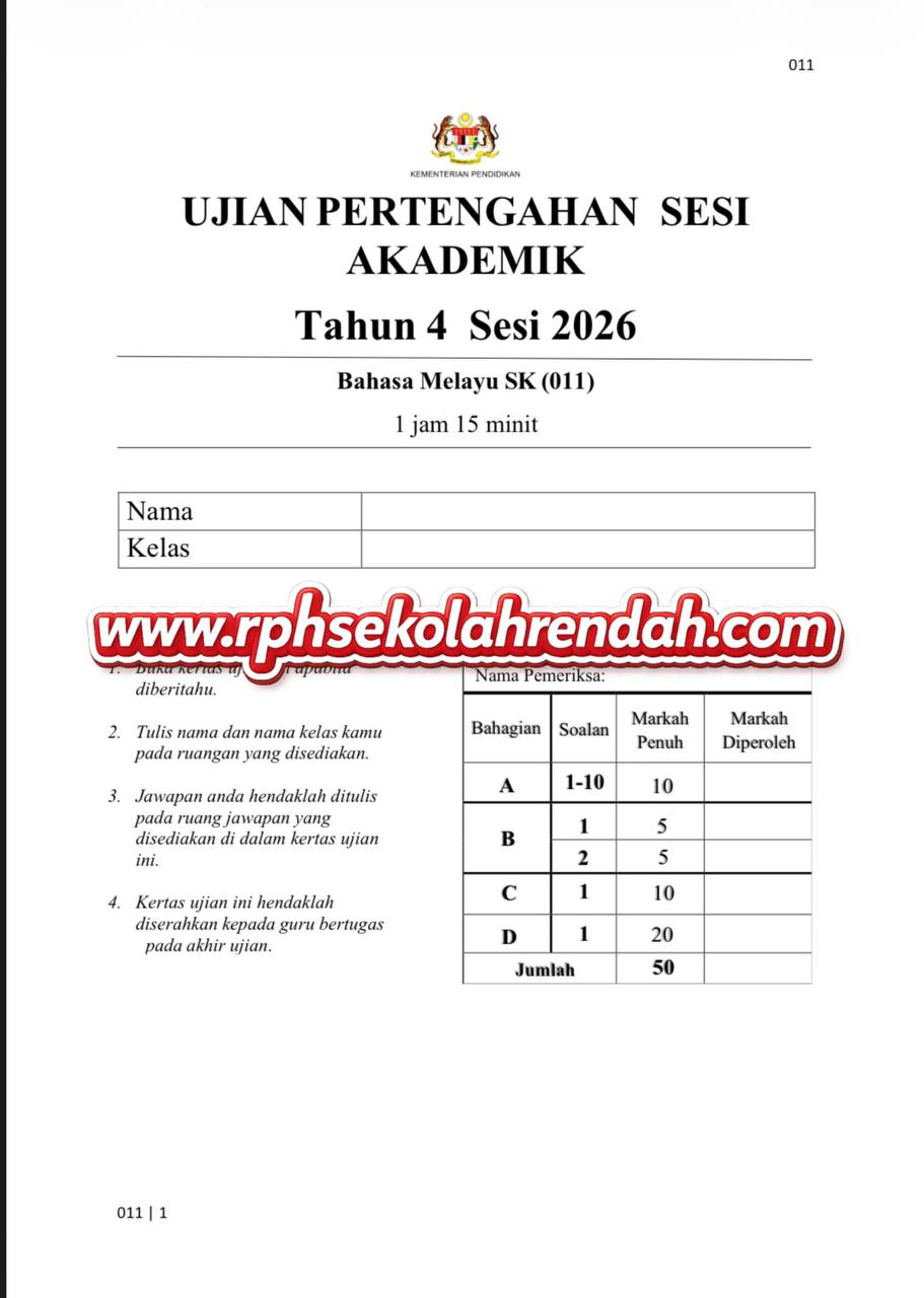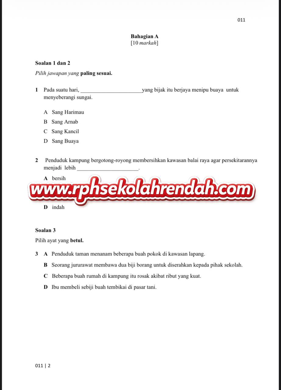 BAHASA MELAYU UPSA TAHUN 4 ( 1 set soalan)