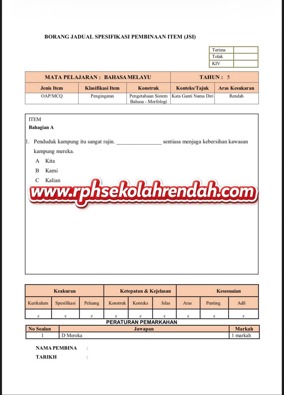 - Rujuk DSKP dan RPT