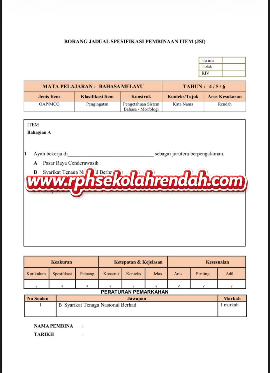 - Rujuk DSKP dan RPT