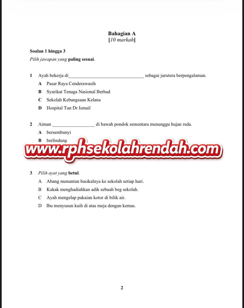 BAHASA MELAYU UPSA TAHUN 6 ( 1 set soalan)