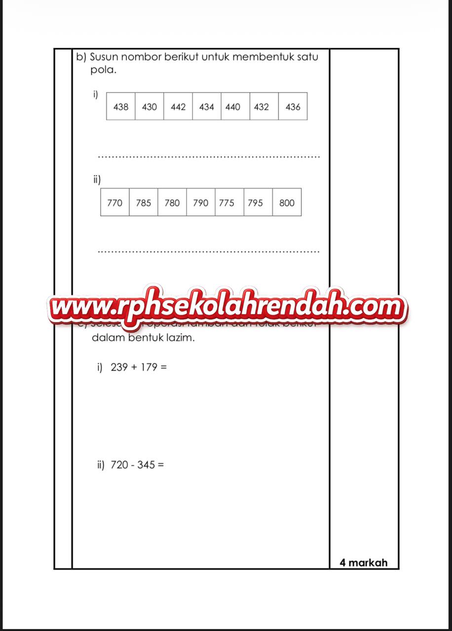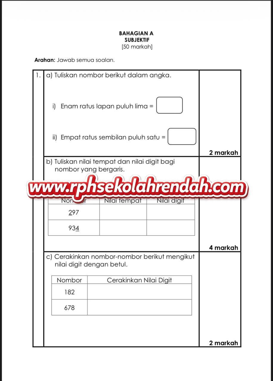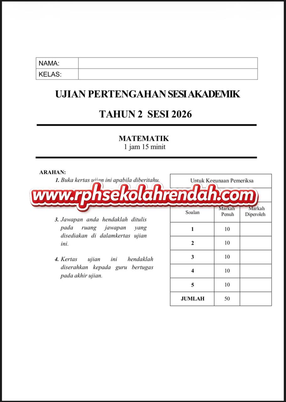 MATEMATIK UPSA TAHUN 2 ( 1 set soalan)