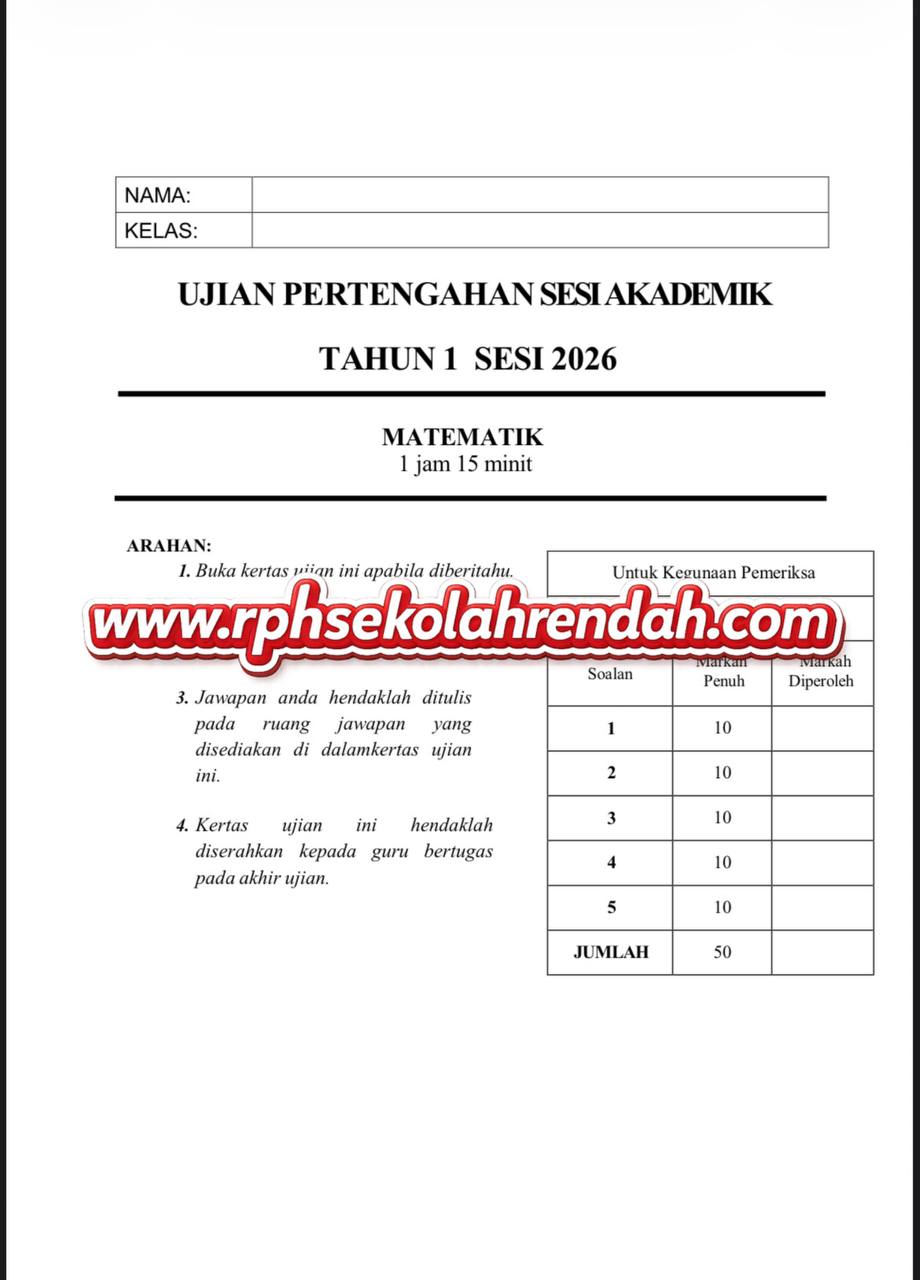 Whatsapp 0138595913 jika ada masalah email tidak diterima. Sila sertakan bersama bukti bayaran atau order. (MATEMATIK UPSA TAHUN 1 ( 1 set soalan))