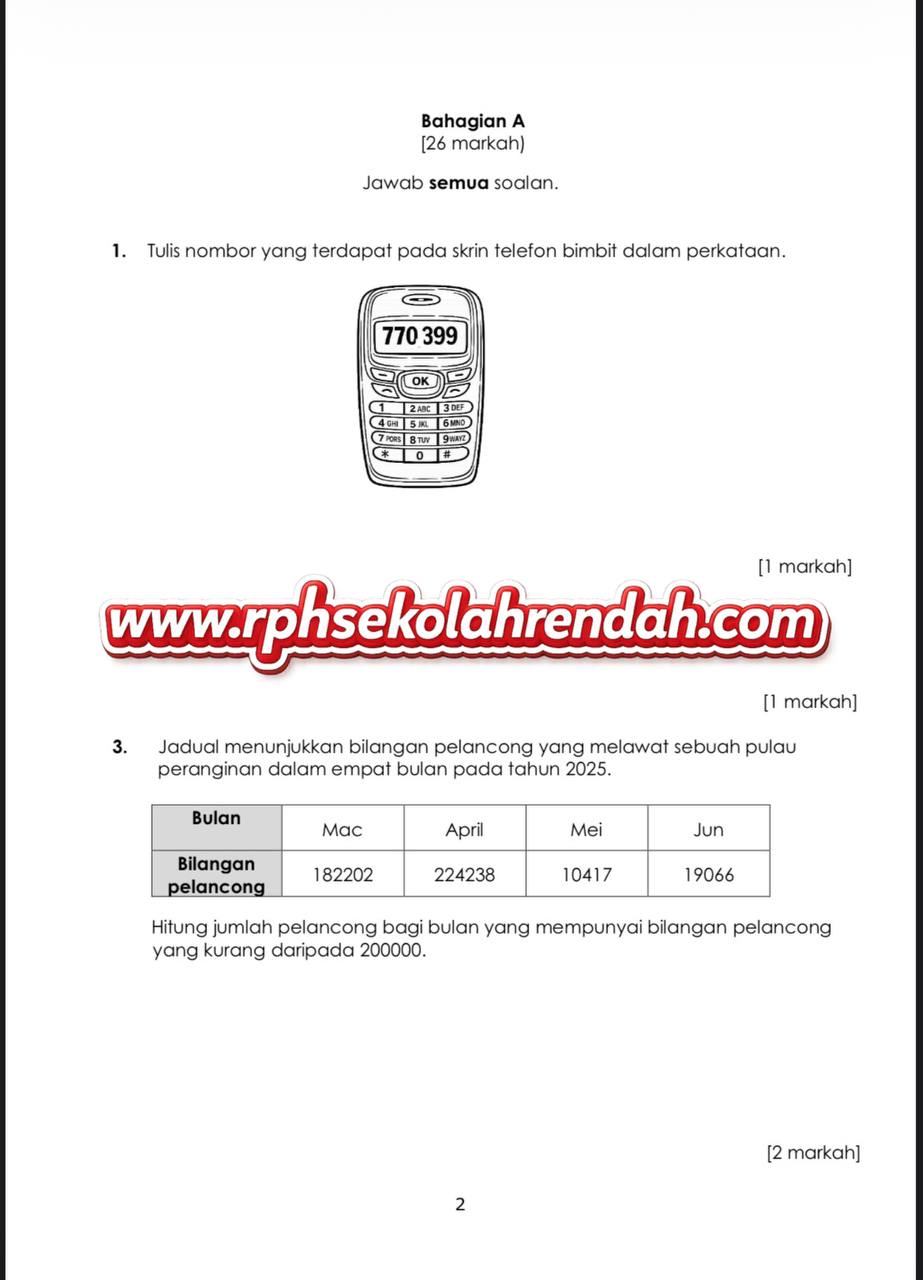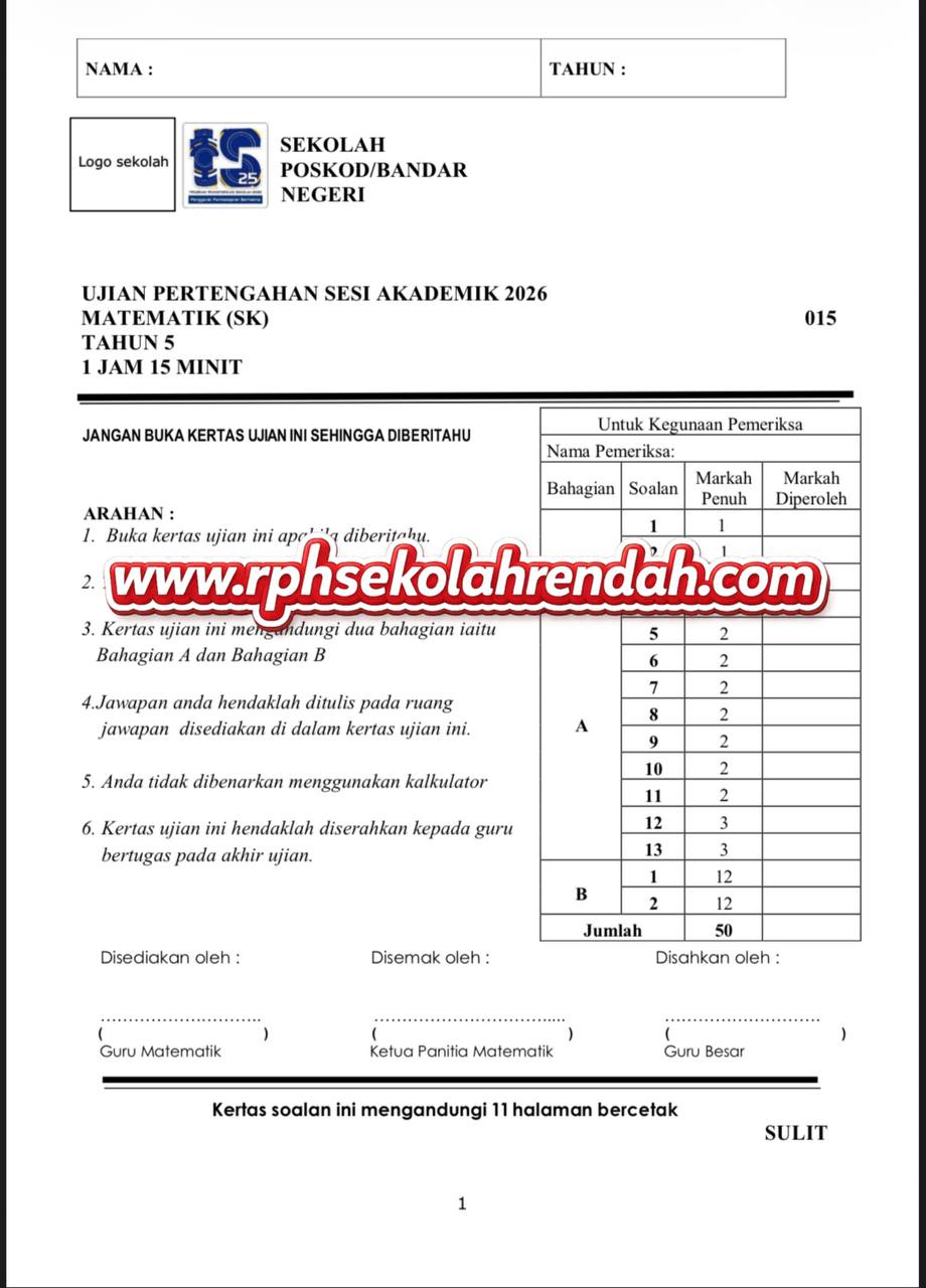 MATEMATIK UPSA TAHUN 5 ( 1 set soalan)