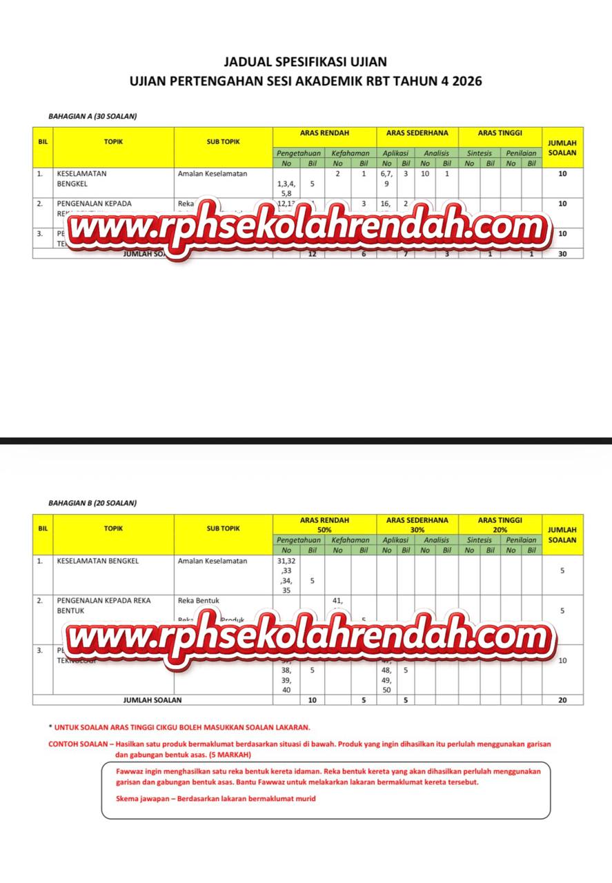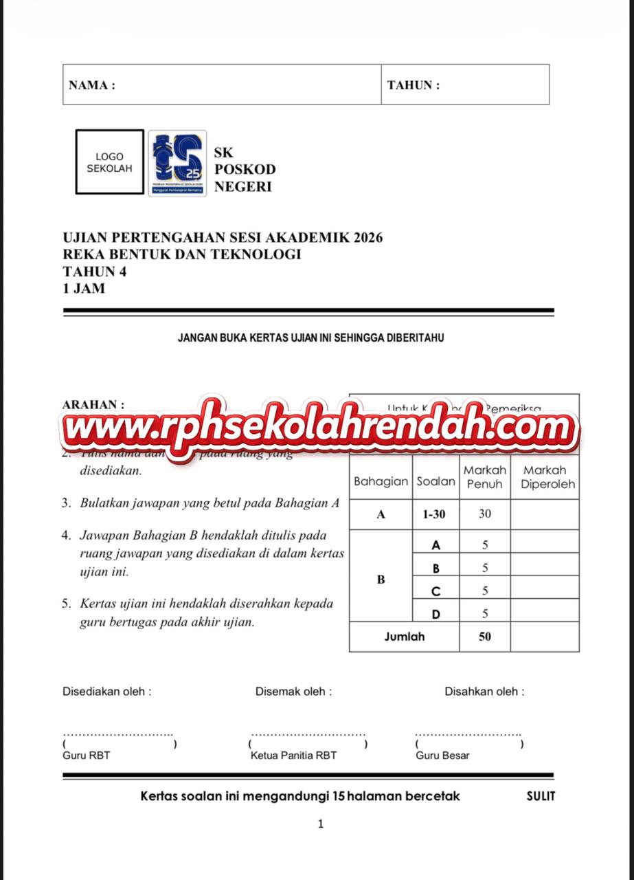 UPSA – Reka Bentuk Dan Teknologi Tahun 4 2026 (Set 1 – Soalan + JSU)