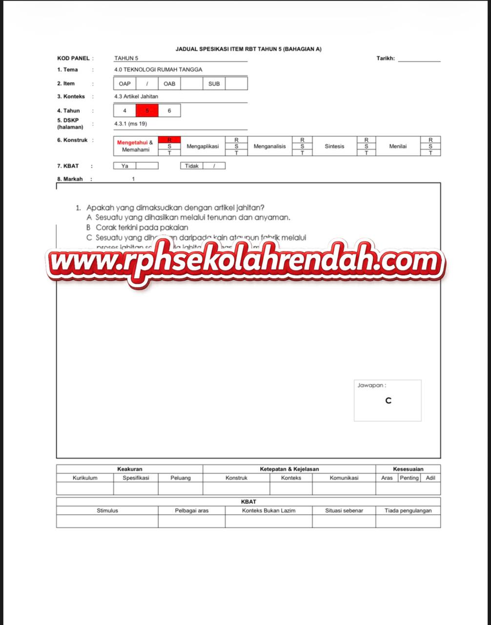 REKA BENTUK DAN TEKNOLOGI UPSA TAHUN 5 ( 1 set soalan)