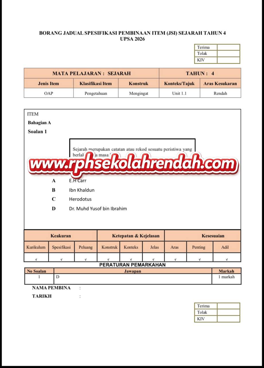 SEJARAH UPSA TAHUN 4 ( 1 set soalan )