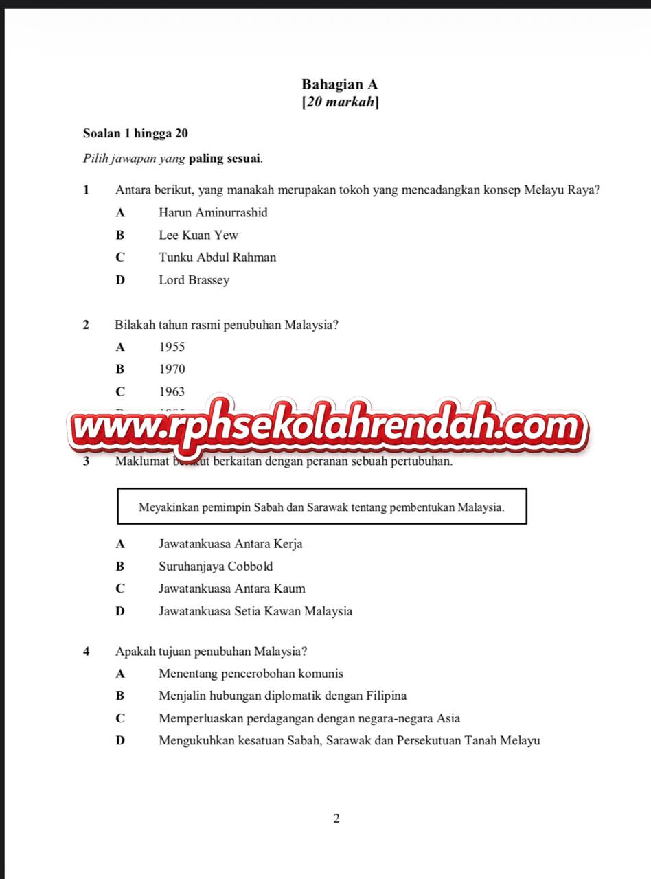 SEJARAH UPSA TAHUN 6 ( 1 set soalan )