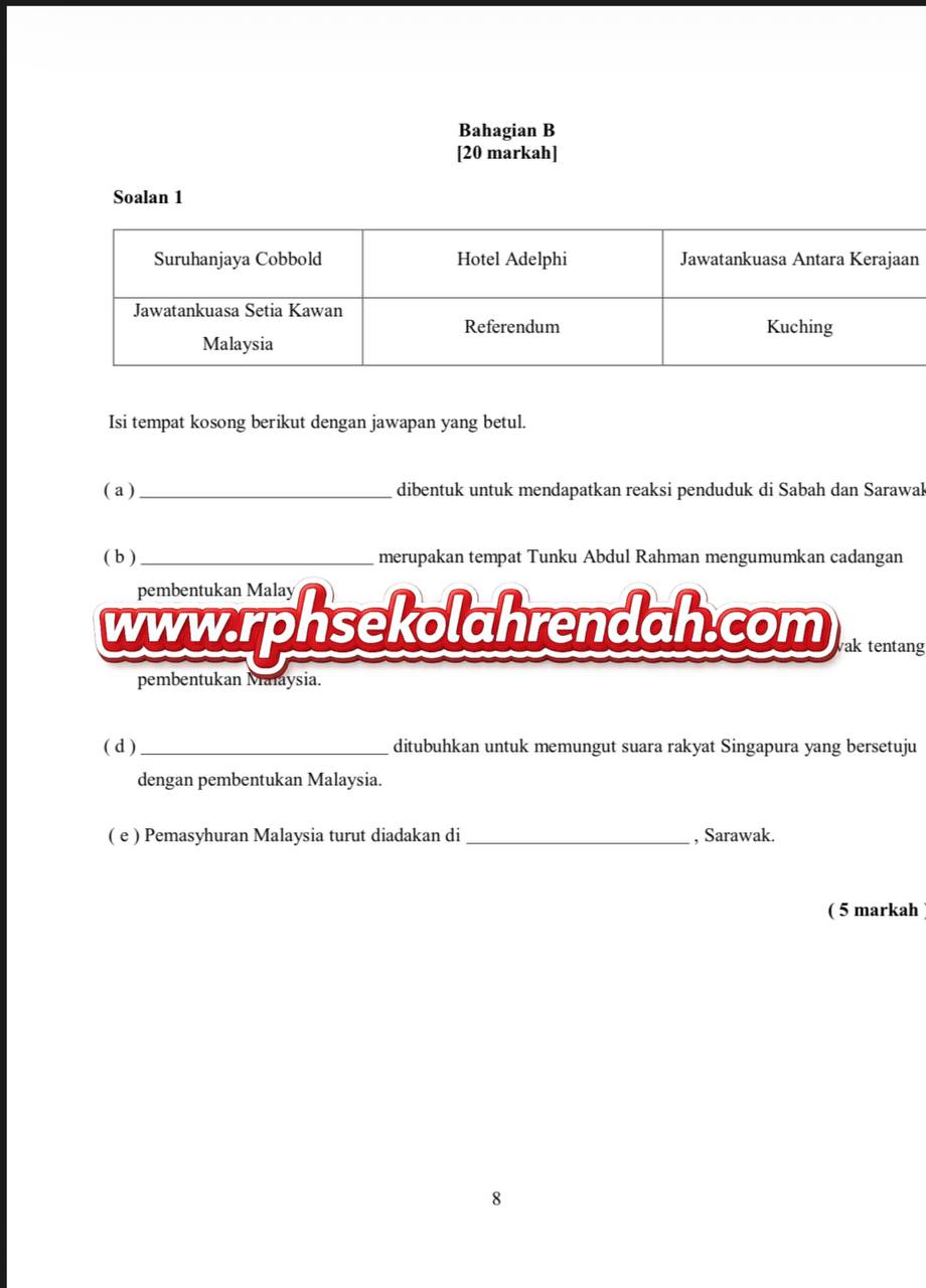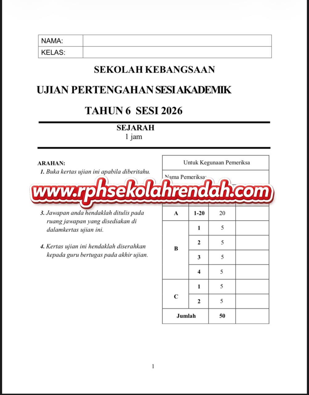 SEJARAH UPSA TAHUN 6 ( 1 set soalan )